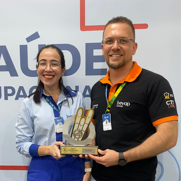 A Bevap Bioenergia foi destaque na edição 2025 do Prêmio MasterCana Centro-Sul & Social, conquistando o troféu na categoria Qualidade de Vida, que reconhece projetos voltados à promoção do bem-estar no ambiente corporativo. A colaboradora Monalisa Silva Rodrigues, Supervisora de Enfermagem do Trabalho, representou o setor de Saúde Ocupacional e a Bevap na cerimônia, reforçando o compromisso da empresa com o cuidado humano.